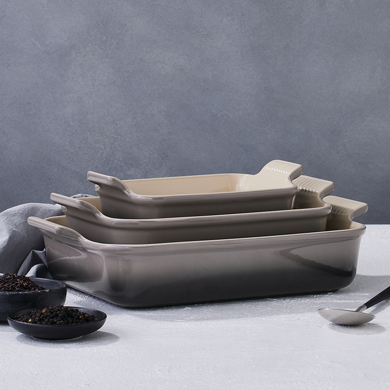 Our Rectangular Casserole and Dish set is equally suited for entertaining guests over the weekend or for weeknight cooking. Ideal for roasting vegetables, preparing casserole dishes, and baking family-sized meals, this set is extremely versatile.