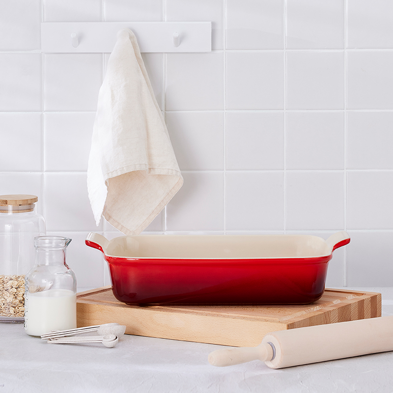 Made with durable stoneware, both the Rectangular Casserole and Dish are built to last, exposing ingredients to an even and consistent heat source. The Rectangular Casserole features a tight-fitting lid to lock in heat and flavour, while the Rectangular Dish is best suited to prepare side dishes, including roasted vegetables, fruit crumbles, or small baked pasta dishes.