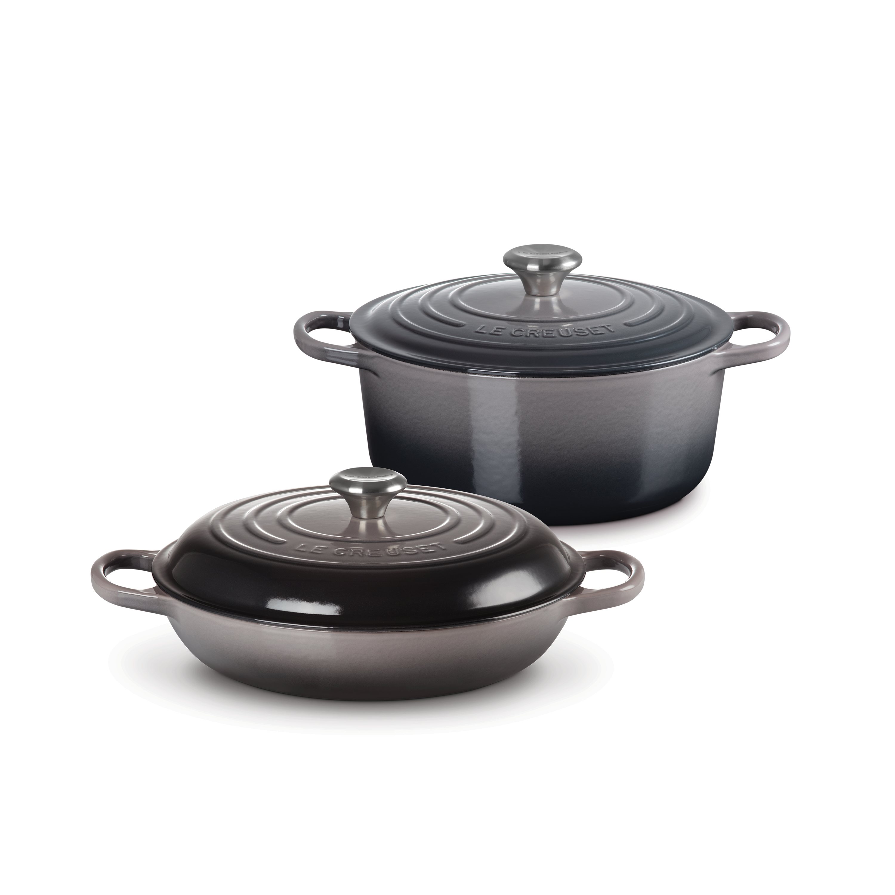 The Round Dutch Oven and Braiser Set is the ultimate cookware duo for those looking to equip their kitchen with the essentials. Comprised of a 5.3 L Round Dutch Oven and a 3.5 L Braiser—two of our most popular shapes—this set is made to embody the set-it-and-forget-it nature of cooking.