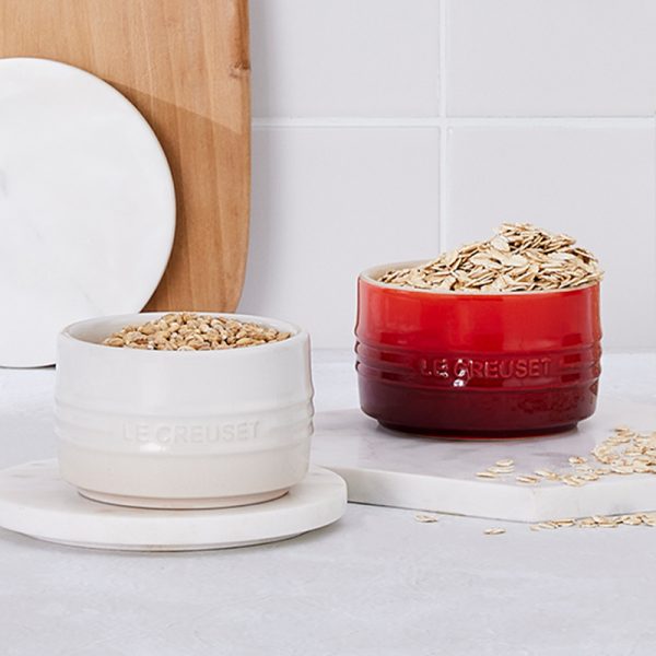 Our Set of 4 Stackable Ramekins is ideal for individual preparation and presentation without sacrificing the even heat distribution and quick-release benefits of cooking with stoneware. These ramekins are safe to use in the oven, with the broiler, or in the microwave, and can even be used to store desserts in the fridge and freezer.