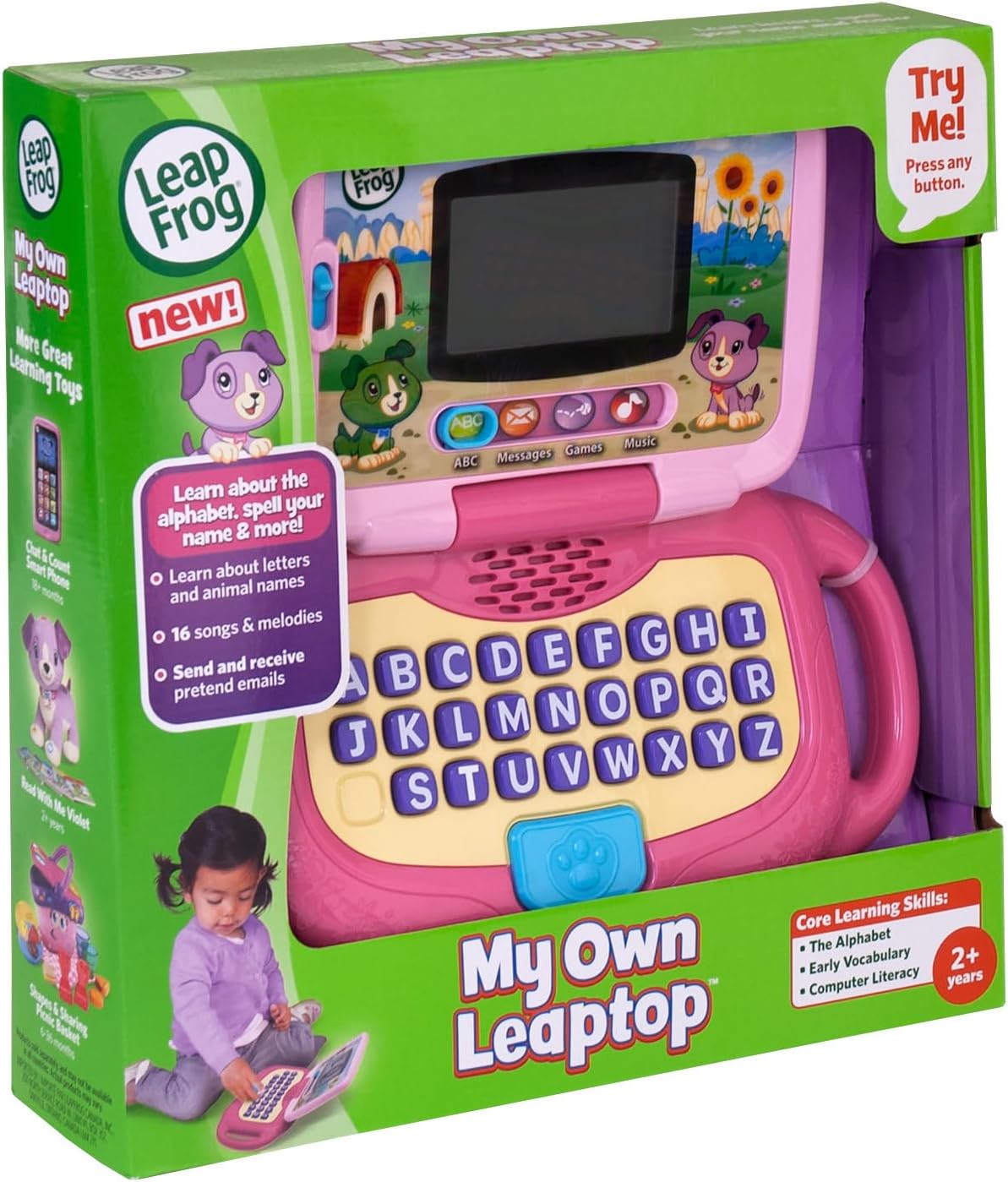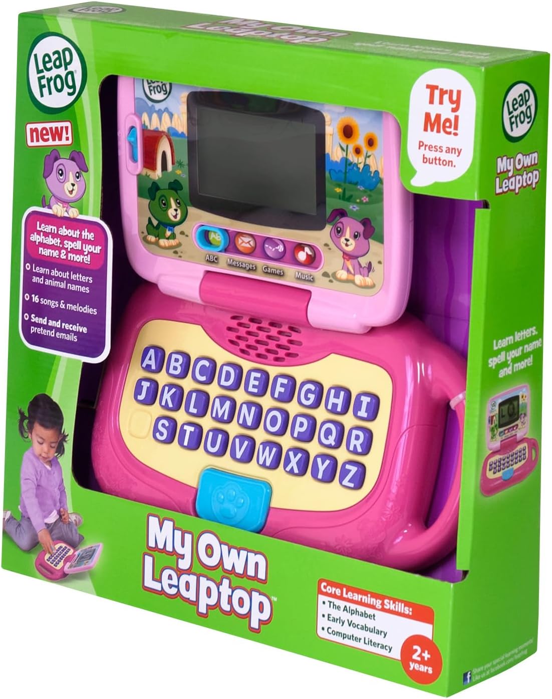 - The award-winning play of My Own Leaptop is now even better with a larger screen featuring 26 fun critter animations! Tap away in 4 learning modes—ABCs, Messages, Games and Music—and bop along to 16 songs and melodies.