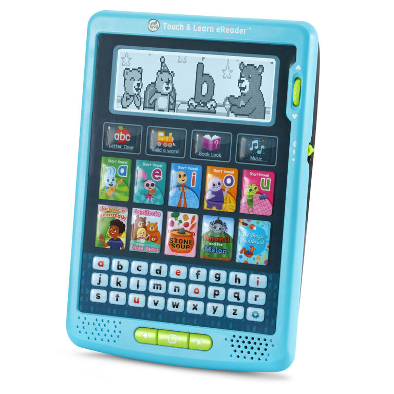 Story time! Listen, follow along or read 10 different tales all in one place just like a grown-up eReader. Explore exciting worlds in five classic fairy tales like Jack and the Beanstalk, Goldilocks and Stone Soup. Interact with five phonics stories that focus on vowels and word building. Listen closely to the stories, then jump into the Story Quiz game to answer questions about what happened in each tale. Play games to explore letter sounds, build words by moving word parts together or listen to original songs about reading and different types of stories. It’s a library for reading, phonics, games and music! Intended for ages 3+ years. Requires 3 AA batteries. Batteries included for demo purposes only. New batteries recommended for regular use.