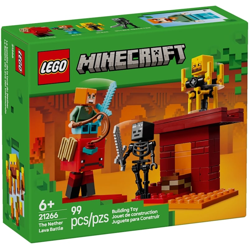 Boys and girls ages 6 and up get to experience a build-and-play version of a popular video game with the LEGO Minecraft The Nether Lava Battle (21266) toy building set. This versatile LEGO Minecraft set features popular gaming figures, fun features and action-packed adventures for hours of pretend play. Kids can join Minecraft action hero Alex on a mission to remove ancient debris from a section of the Nether fortress bridge located in the crimson forest. When the debris is removed, lava elements cascade down, and Minecraft figures – including a stone-sword wielding wither skeleton and a rod-spinning blaze – block Alex’s escape. Kids can battle the mobs with a diamond sword before fleeing on another Minecraft figure – a strider with posable legs and a saddle. For extra digital fun, the LEGO Builder app lets kids zoom in and rotate models in 3D using their device. This makes a great birthday, holiday or any-day gift for kids and young Minecraft fans. Contains 99 pieces.