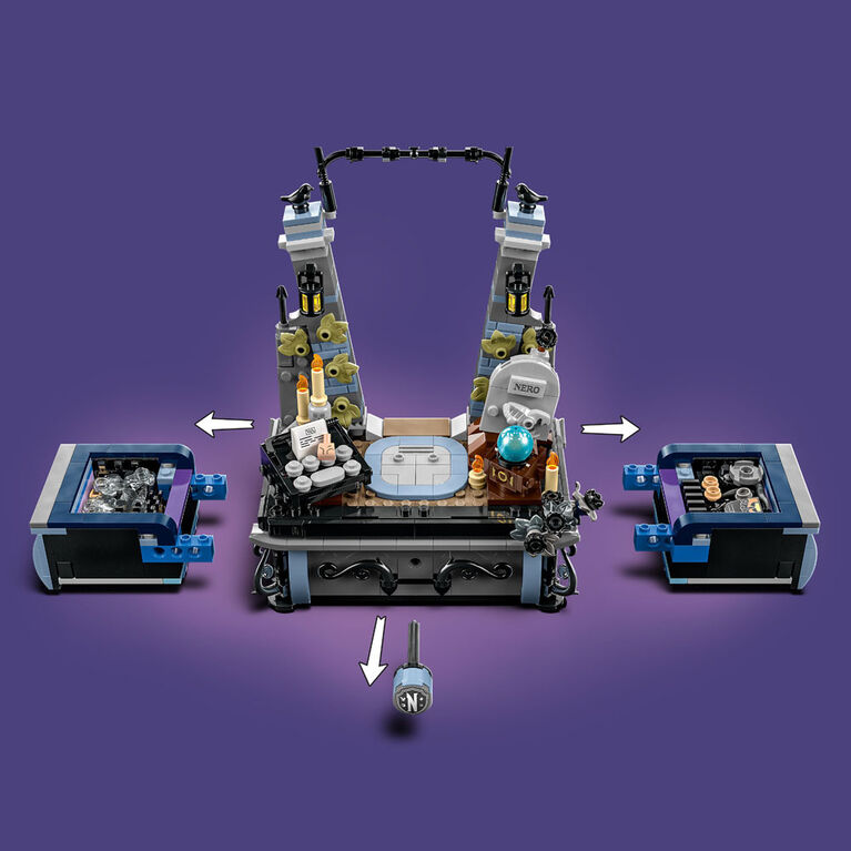Mysteries and mayhem await kids ages 10 and up in the Wednesday Addams Figure (76780) set. This LEGO Wednesday gift set features a collectible, posable model with movable head, arms and feet, plus 2 faces and 2 outfits so the figure can be rebuilt. The set includes her loyal sidekick Thing, a stand with toy black dahlias and 2 hidden spaces to hold treasures like the Rave’N Dance dress or her uniform. There’s also the Nevermore Academy gate and Wednesday’s accessories, including her typewriter, Nero’s grave, a crystal ball and more. Discover other LEGO Wednesday Addams sets (sold separately) for more play options. This model also makes a cool birthday gift for kids. A digital version of the building instructions can be found on the LEGO Builder app. There’s also a QR code sticker for the back of the display base that can be scanned so fans can easily access the digital instructions to rebuild or change Wednesday’s outfit. The app lets kids zoom in and rotate models in 3D, and more. Contains 702 pieces.