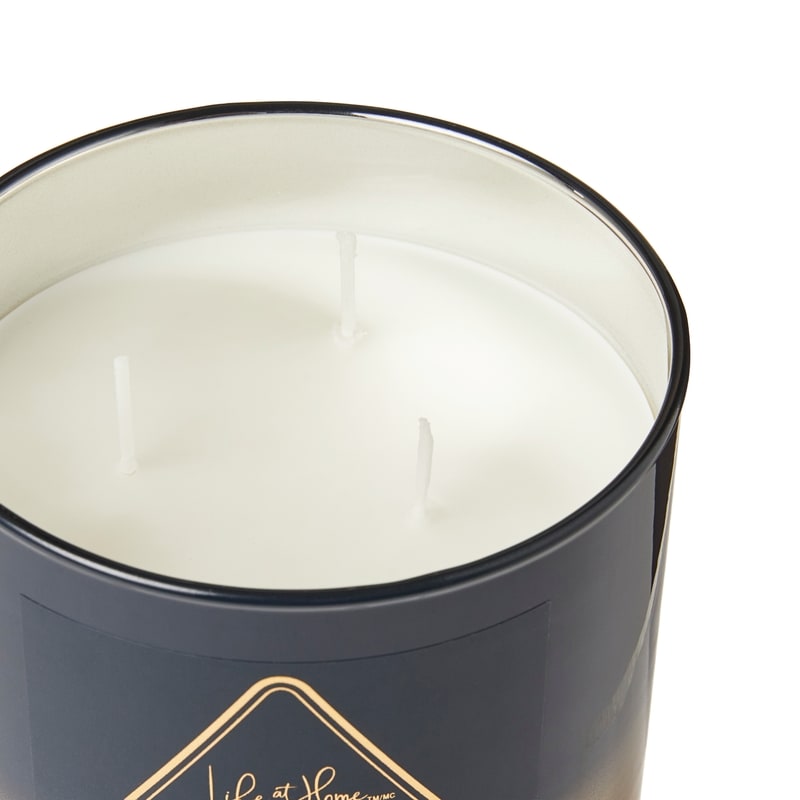 - Colours: Dark blue ombre jar, white wax, and gold lid