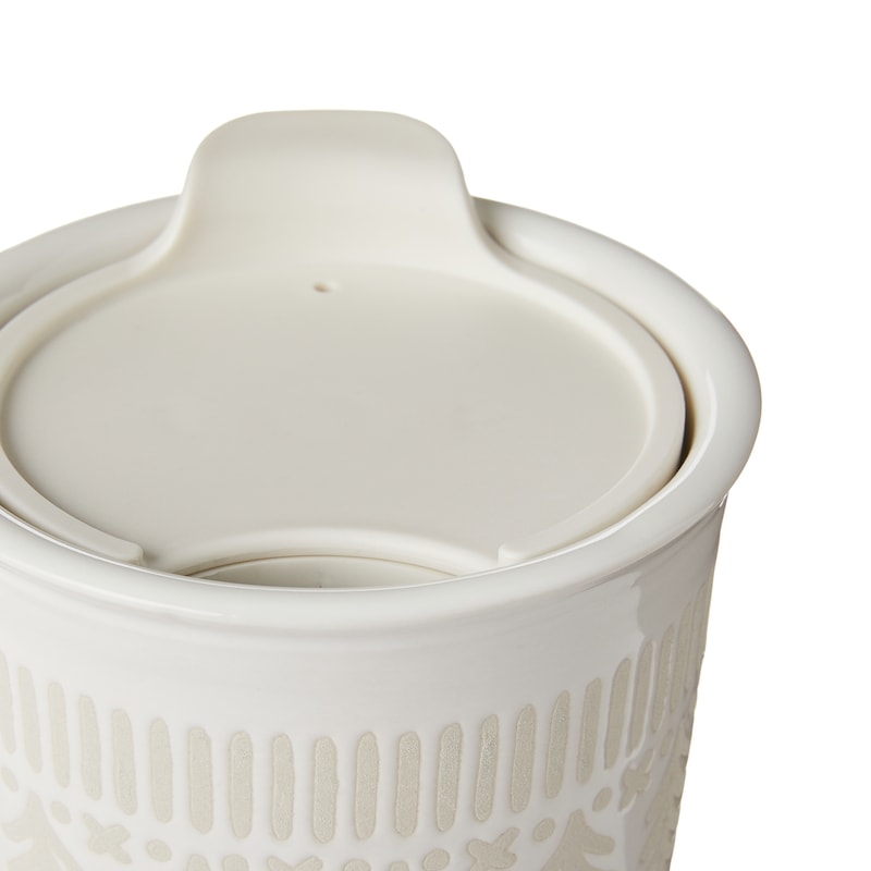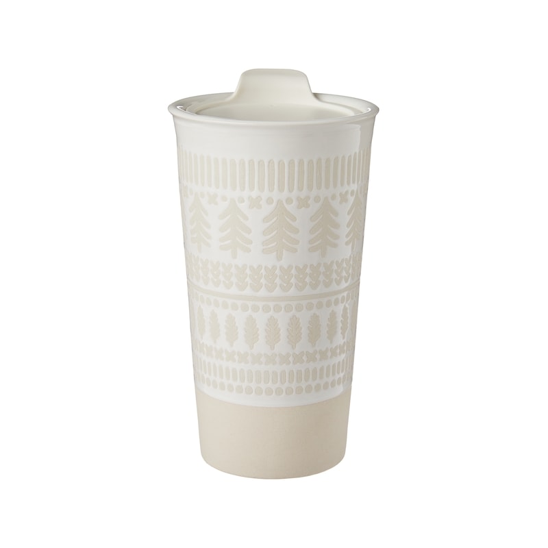 Take your tea, coffee, or any other beverage on the go with our Travel Mug with Lid. It’s made with a unique silk screen scraping technique for a textured surface with a refined, artisanal feel. Part of our Holiday Cheer Collection, it’s microwave and dishwasher safe for convenient everyday use.