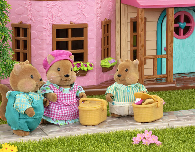 Meet the Bushytail Squirrel Family from Honeysuckle Hollow! This family set includes four animal characters to add to your Li’l Woodzeez collection: Mom Maggie, Dad Oliver, and kids Henry and Honeybun. The Bushytail Squirrel Family runs the Tickle-Your-Taste-Buds Bakery, where all the Li’l Woodzeez go to get warm croissants and fresh bread! These fuzzy mini figurines have soft fur and they fit in the smallest hands. Their outfits are compatible with the other animal characters from Honeysuckle Hollow, so you can mix and match for a fun try-on session! You can also move their heads, arms, and legs – perfect for hours of playtime. All they need is a bit of imagination to come alive! Li’l Woodzeez collectibles are recommended for kids aged 3 and over. Playsets and other accessories sold separately.