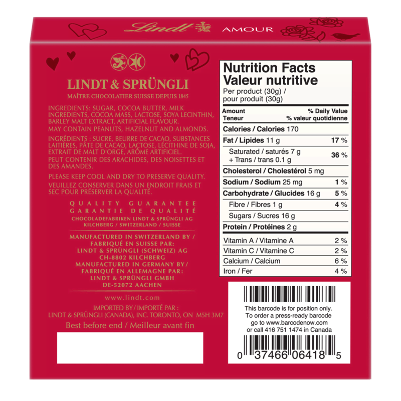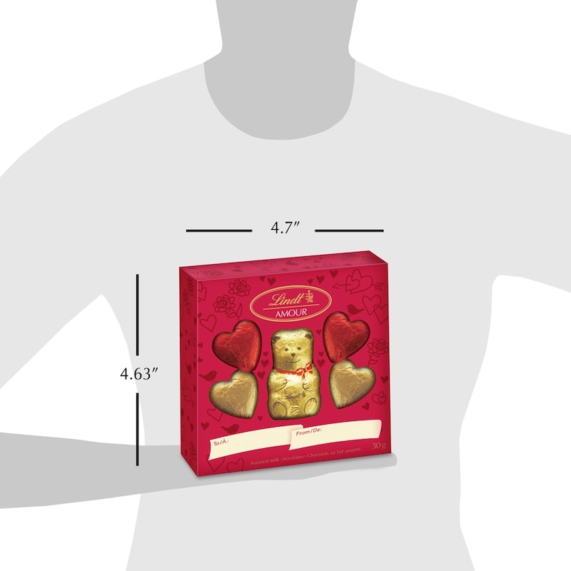 Give the gift of bliss to the special people in your life this Valentine’s Day with the Lindt TEDDY Milk Chocolate Heart Pack. A perfect present for chocolate lovers, this collection of adorable Valentine’s chocolates features one solid milk chocolate Lindt TEDDY and four milk chocolate hearts wrapped in red and gold foils. In addition to tasty Valentine’s gifts, you can also use these colourful Swiss chocolates as festive plate and table decorations for Valentine’s Day meals or as given individually along with Valentine’s cards to friends and family members.