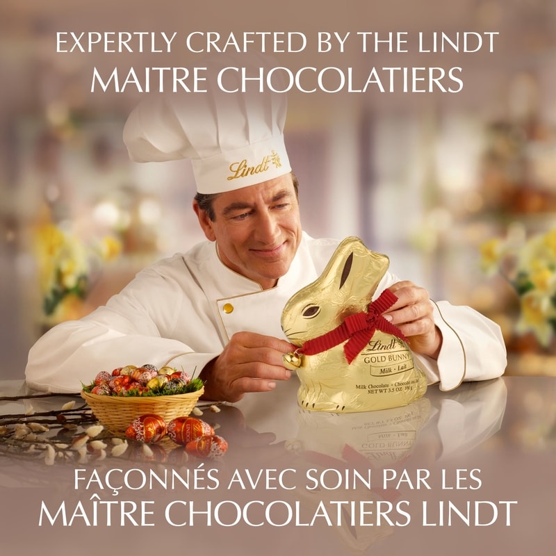 Make Easter moments magical with the Lindt GOLD BUNNY Milk Chocolate Easter Bunny. Made of Lindt’s gourmet Swiss milk chocolate, the iconic hollow chocolate bunny comes all dressed up for the holiday in gold foil with a red ribbon and a golden bell that rings. This beloved and elegant Easter treat makes a great addition to Easter baskets and egg hunts. Make sure to store chocolate in a cool, dry place to ensure quality.