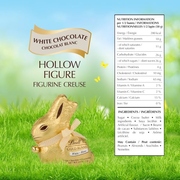 Make Easter moments magical with the Lindt GOLD BUNNY White Chocolate Easter Bunny, a delightful and delicious Easter treat. Made of Lindt’s gourmet Swiss white chocolate, the hollow chocolate bunny comes all dressed up for the holiday in gold foil with a white ribbon and a golden bell that rings. Lindt’s premium chocolates are perfect for sharing with family and friends and make a great addition to Easter baskets and egg hunts. Make sure to store chocolate in a cool, dry place to ensure quality.