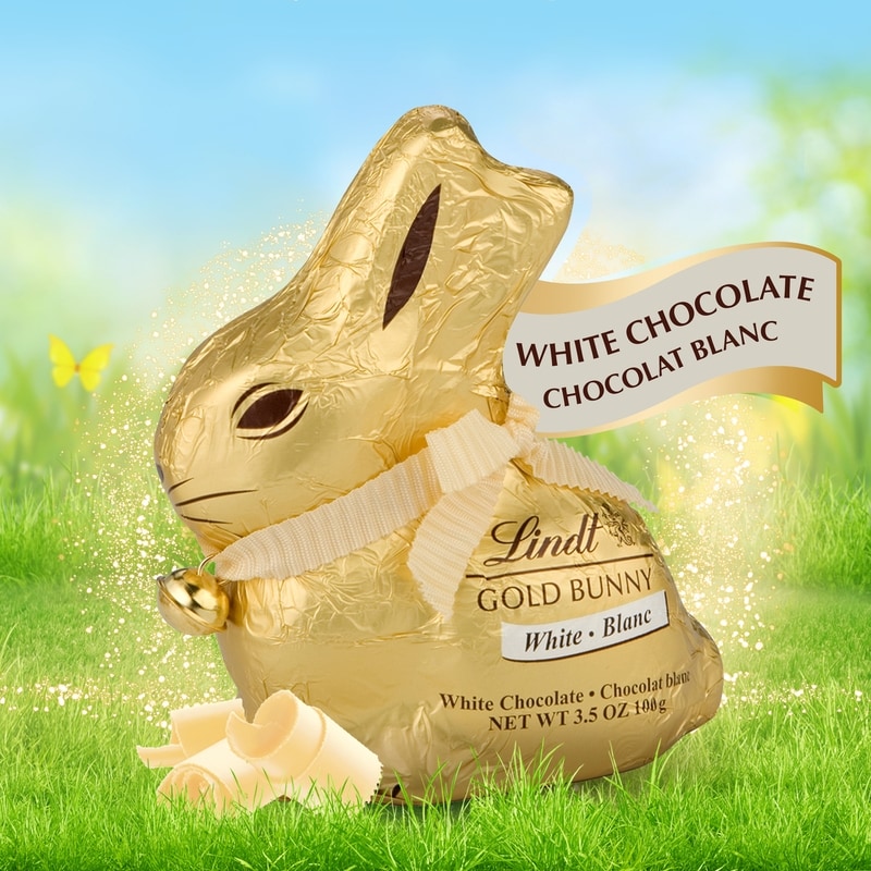 Make Easter moments magical with the Lindt GOLD BUNNY White Chocolate Easter Bunny, a delightful and delicious Easter treat. Made of Lindt’s gourmet Swiss white chocolate, the hollow chocolate bunny comes all dressed up for the holiday in gold foil with a white ribbon and a golden bell that rings. Lindt’s premium chocolates are perfect for sharing with family and friends and make a great addition to Easter baskets and egg hunts. Make sure to store chocolate in a cool, dry place to ensure quality.