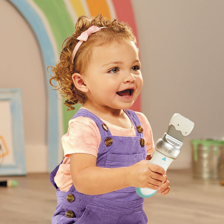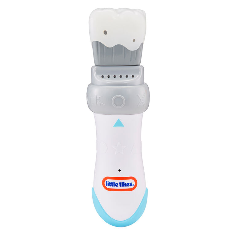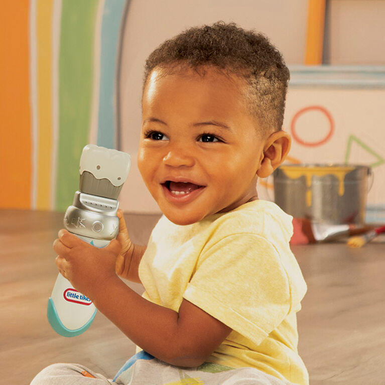 The Little Tikes Learn and Play Shapes and Sounds Paintbrush develops color recognition and teaches shapes. Each wave of the paintbrush reveals a colorful light display and speaks the corresponding colors: blue, green, orange, pink, purple, red, and yellow. Children will delight in learning six shapes as the paintbrush directs them to paint the shape in the air and rewards them with fun sounds. Plus, there is silly sounds mode. Use the pinhole to switch from English to French. The Shapes and Sounds Paintbrush requires 2 AAA batteries and is for ages 9+ months.