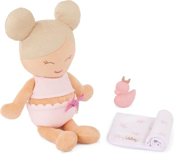 LullaBaby – 14-Inch Bath Doll – Fair Skintone & Blonde Hair Baby Girl Doll with Accessories – Soft Plush Body – Real Water Play – Toddler Toy – Ages 2+