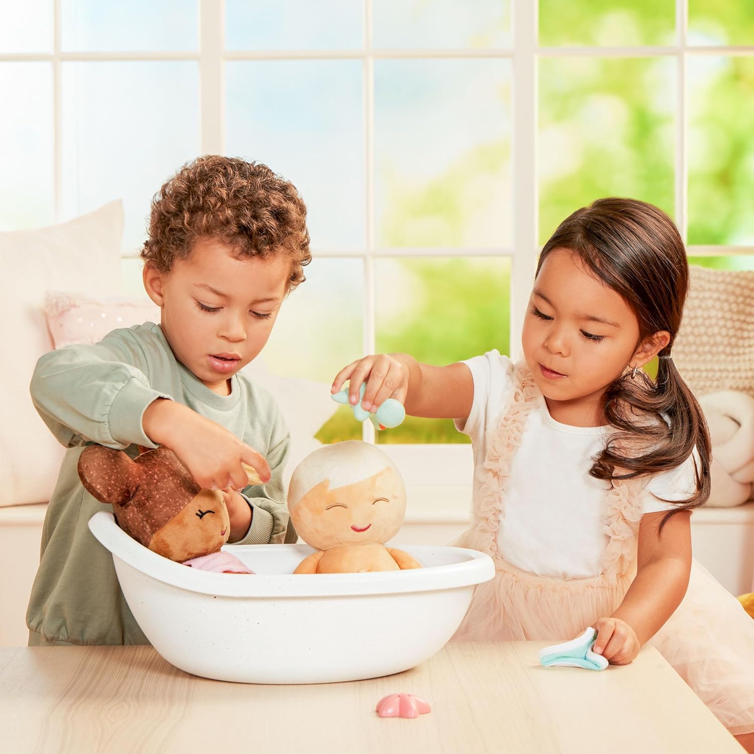 - Cute Details: This unique 14" bath doll is designed with blonde hair and made of ultra-soft, water-safe plush for little hands to cuddle and carry.