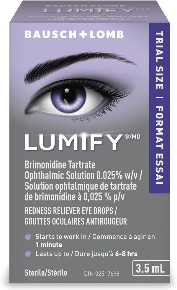 - Eye Drops for Red Eyes: LUMIFY significantly reduces redness to help eyes appear whiter and brighter. From the eye care experts at Bausch + Lomb, LUMIFY starts to work in 1 minute and lasts up to 6-8 hours.