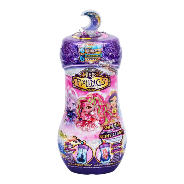 Welcome to the Shimmerverse! Now your child can enter a new magical realm where Pixlings spread their magic across the world, leaving a little sparkle wherever they go! Which Magic Mixies Pixling will they magically create as they mix a shimmering magic potion that reveals their Pixling doll? To make their potion, your child can combine water with the included magical ingredients in the potion bottle. The potion will bubble to become a shimmering, swirling dark blue mixture. Then say the magic words, “Magicus Mixus”, while turning and pressing the crystal moon topper, and the potion becomes clear before their eyes, magically revealing their Pixling inside! This enchanting Pixling doll is easily removed from the bottle, completely dry, and ready for your child to play with! Meet Howlexa the Wolf Pixling. She has a gorgeous crystal gem on her forehead, is 6.5″ tall, and has 7 points of articulation for easy posing. Beautifully detailed with gorgeous long brushable hair, Howlexa has soft good fashions with sparkling finishes and crafted shoes, making her the ultimate collectable fashion doll. A doll’s stand is also included to help display Howlexa’s different poses. There are 2 new Pixlings to collect. Will you find Tiggz the Tiger Pixling next? Or perhaps you’ll find the limited edition Unia! Join the Pixlings as they travel across the Shimmerverse and adventure into a new world of real magic.