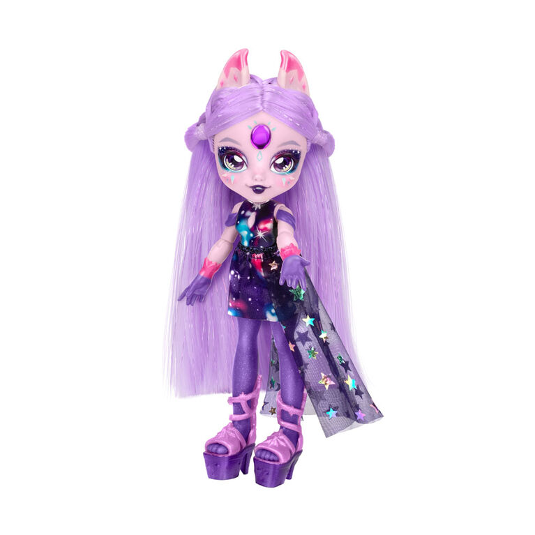 Welcome to the Shimmerverse! Now your child can enter a new magical realm where Pixlings spread their magic across the world, leaving a little sparkle wherever they go! Which Magic Mixies Pixling will they magically create as they mix a shimmering magic potion that reveals their Pixling doll? To make their potion, your child can combine water with the included magical ingredients in the potion bottle. The potion will bubble to become a shimmering, swirling dark blue mixture. Then say the magic words, “Magicus Mixus”, while turning and pressing the crystal moon topper, and the potion becomes clear before their eyes, magically revealing their Pixling inside! This enchanting Pixling doll is easily removed from the bottle, completely dry, and ready for your child to play with! Meet Howlexa the Wolf Pixling. She has a gorgeous crystal gem on her forehead, is 6.5″ tall, and has 7 points of articulation for easy posing. Beautifully detailed with gorgeous long brushable hair, Howlexa has soft good fashions with sparkling finishes and crafted shoes, making her the ultimate collectable fashion doll. A doll’s stand is also included to help display Howlexa’s different poses. There are 2 new Pixlings to collect. Will you find Tiggz the Tiger Pixling next? Or perhaps you’ll find the limited edition Unia! Join the Pixlings as they travel across the Shimmerverse and adventure into a new world of real magic.