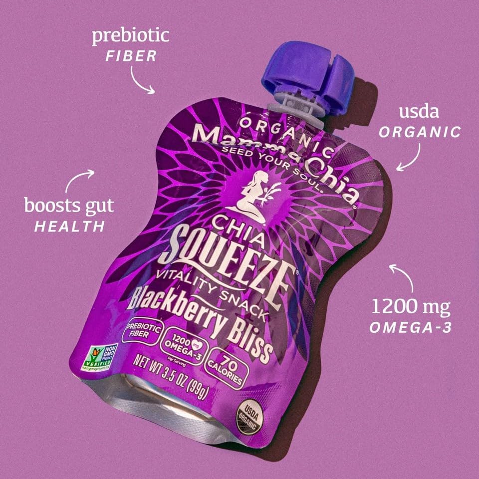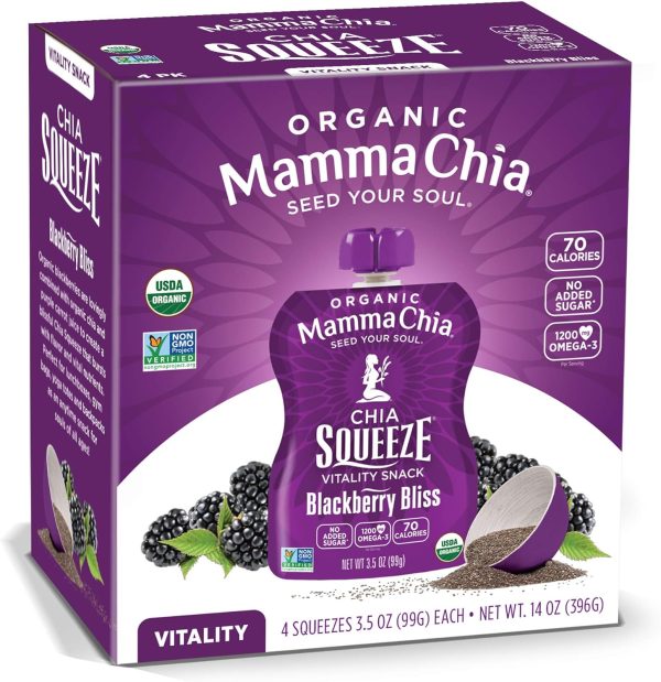 - Mamma Chia: With the superfood power of organic chia, Chia Squeeze is a satisfying anytime snack that naturally provides the vitality to power your soul’s purpose! Perfect for lunchboxes, gym bags, yoga totes and backpacks!