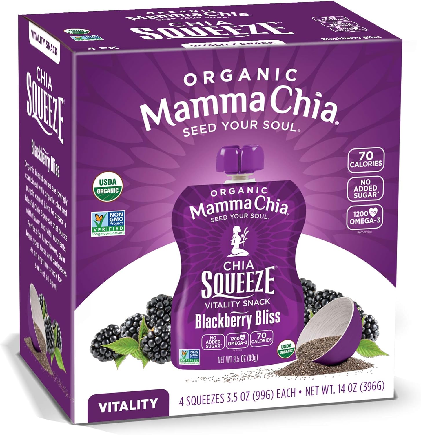 - Blackberry Bliss: Organic blackberries are lovingly combined with organic chia and purple carrot juice to create a blissful Chia Squeeze that bursts with flavor and vital nutrients.