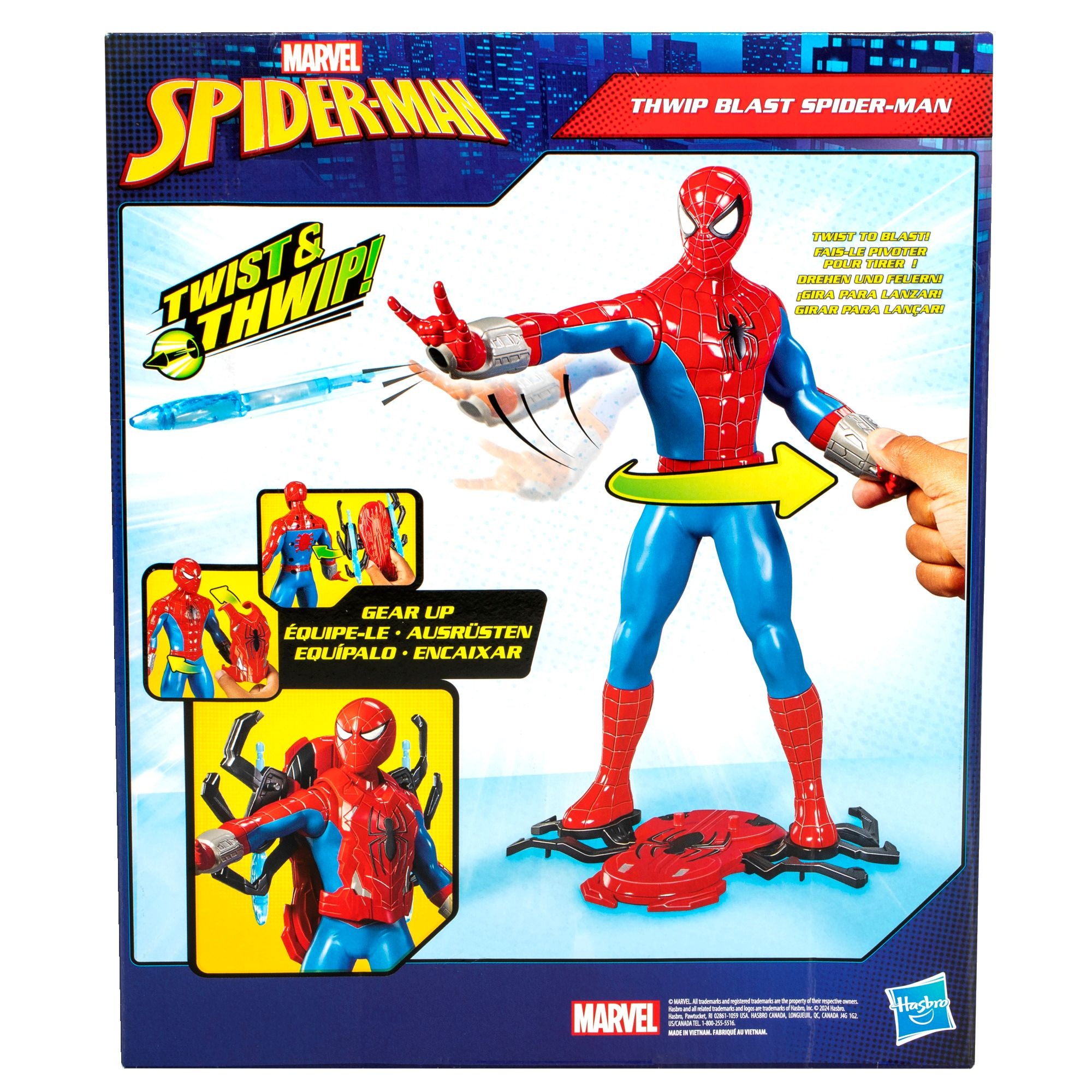 The Marvel Thwip Blast Spider-Man Action Figure brings your friendly neighbourhood hero to life with this 11-inch figure designed for action-packed play. Complete with exciting accessories, Spider-Man is ready to take on villains with his signature web-blasting action. The figure features articulated limbs for dynamic posing, allowing kids to recreate their favourite scenes from the Spider-Man universe or imagine brand new adventures.
