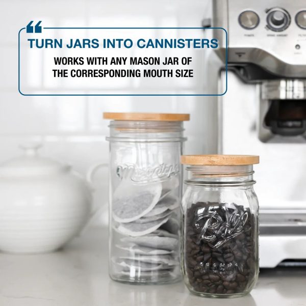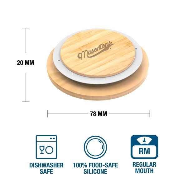 Turning mason jars into convenient storage has never looked this stylish. Made from fast-growing bamboo, these press-on lids fit regular mouth jars securely, creating airtight canisters perfect for dry storage of grains, seeds and nuts. Slip the lids on easily and say goodbye to messy spills – now your pantry essentials stay neatly contained in these beautiful timber-top lids that showcase the mason jars instead of hiding them. BPA and phthalate free silicone makes these lids safe for food storage while the bamboo brings a touch of natural elegance to your kitchen counter.