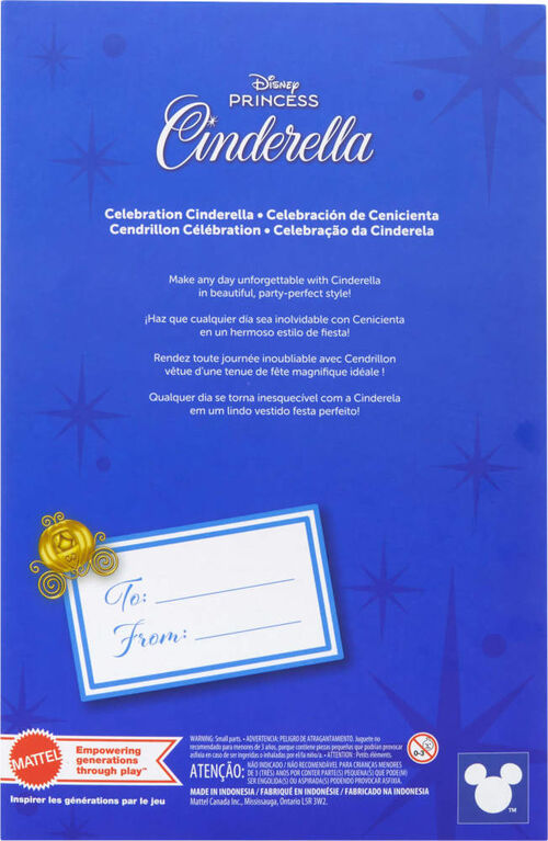 Make birthday dreams come true with this beautiful Disney Princess Birthday Celebration Cinderella doll, inspired by the animated character from the classic Disney film. Wearing a party-perfect look in her signature color, Cinderella doll stuns in a satin ballgown with a festive gift-ribbon print and an adorable gift accessory. It’s the perfect special occasion gift for Disney fans of all ages! Doll cannot stand alone. Colors and decorations may vary.