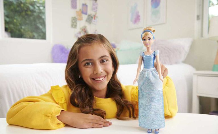 Meet this Cinderella doll, inspired by the kind and courageous princess from the classic Disney movie! This posable fashion doll is shown in a sparkling outfit and accessories that include shoes and a tiara. In her signature look from the movie, this Cinderella doll is ready for any adventure! Doll cannot stand alone. Colors and decorations may vary.