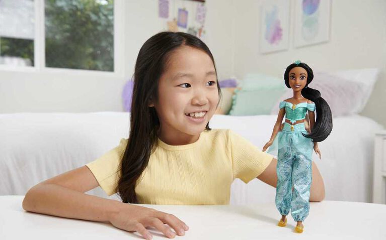 Meet this Princess Jasmine doll, inspired by the generous and daring heroine from Disney’s Aladdin. This posable fashion doll is shown in a sparkling outfit and accessories that include shoes and a tiara. In her signature look from the movie, this Jasmine doll is ready for any adventure! Doll cannot stand alone. Colors and decorations may vary.