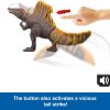 - So much action! Press the button on back to activate the realistic tail swipe and side-to-side head thrash and chomp. The more and faster it's pressed, the fiercer the attack moves, even after it's let go.