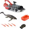 Mattel Matchbox Jurassic World Mosasaurus Rescue Action Boat Playset with Ship, Dino, Toy Car & Missiles