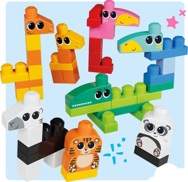 Toddlers can build and discover the wonderful world of animals with the MEGA BLOKS Animal Blocks building toy. They can match and stack the blocks to build a lion, giraffe, bird, and much more. When playtime is over, blocks can be stored inside the included reusable storage bag for easy cleanup.