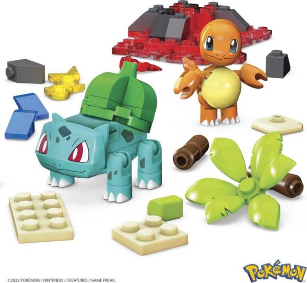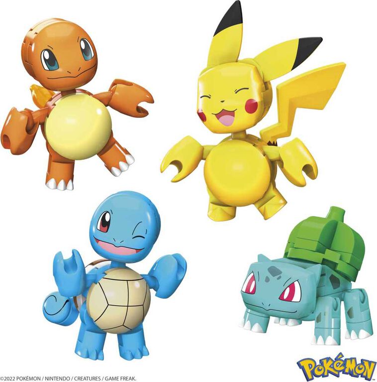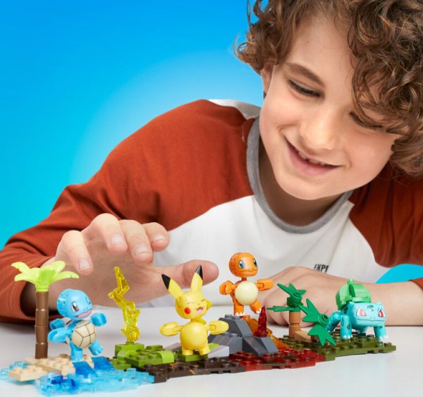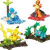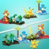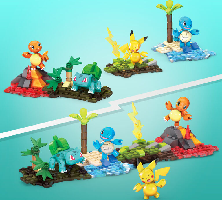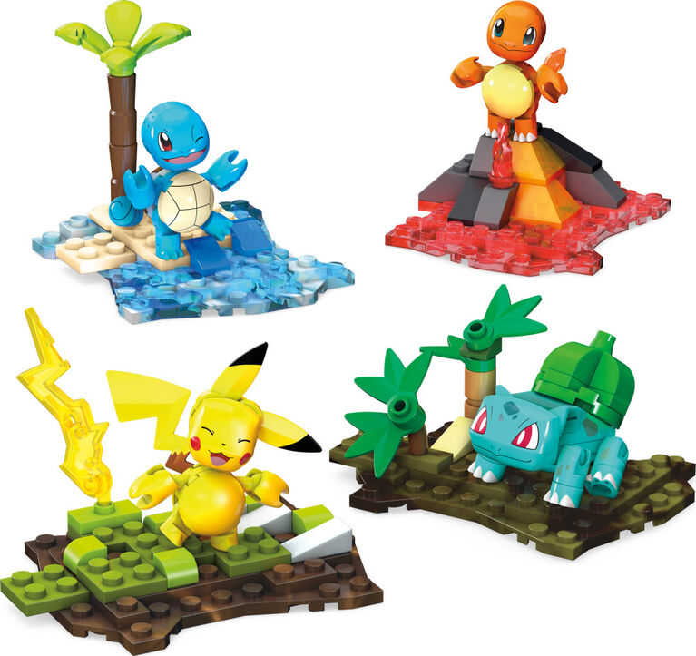 Set includes Pikachu, Squirtle, Charmander and Bulbasaur plus buildable environment stands
