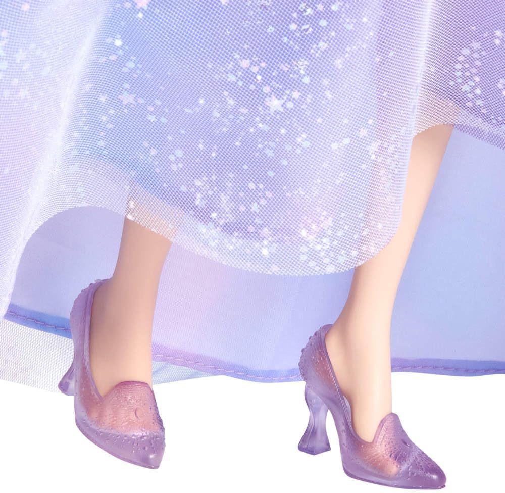 • She dazzles in a true-to-movie premium organza gown with flutter shoulders and shimmery long sleeves