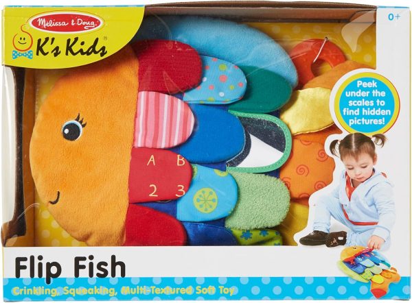 Melissa & Doug K’s Kids, Flip Fish Stuffed Animal, Soft Baby Book, Multi-Textured Squeaking & Crinkling Infant Sensory Toys for Babies with Baby Mirror, Tummy Time Toys for Infants Ages 0–9 Months