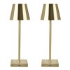 Elegant and stylish, set of 2 rechargeable 35.5 cm (14 in.) LED lamps brings sleek, modern style to your living space, offering a convenient light source while adding visual appeal to end tables, nightstands, mantels, and more. These eye-catching and environmentally friendly lamps are portable and cordless for maximum flexibility. LED lamps feature three light colors: warm white, natural white, and cool white.