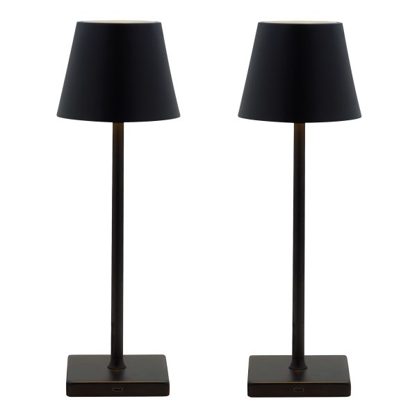 Elegant and stylish, set of 2 rechargeable 35.5 cm (14 in.) LED lamps brings sleek, modern style to your living space, offering a convenient light source while adding visual appeal to end tables, nightstands, mantels, and more. These eye-catching and environmentally friendly lamps are portable and cordless for maximum flexibility. LED lamps feature three light colors: warm white, natural white, and cool white.