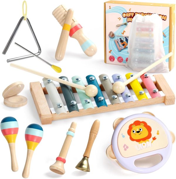 - 8+1 Montessori Toys for 1 Year Old: Our 1 year old girl toys is designed for babies who love Montessori instruments. The toys for 1 year old boys girls include a xylophone, triangle, percussion stick, castanets, clarinet, small bell, threaded single bell, maracas, a storage bag, and a free one-piece tambourine. Through tapping, shaking, and clapping, the various instruments stimulate baby's rhythmic recognition and are the first step in nurturing their musical potential!