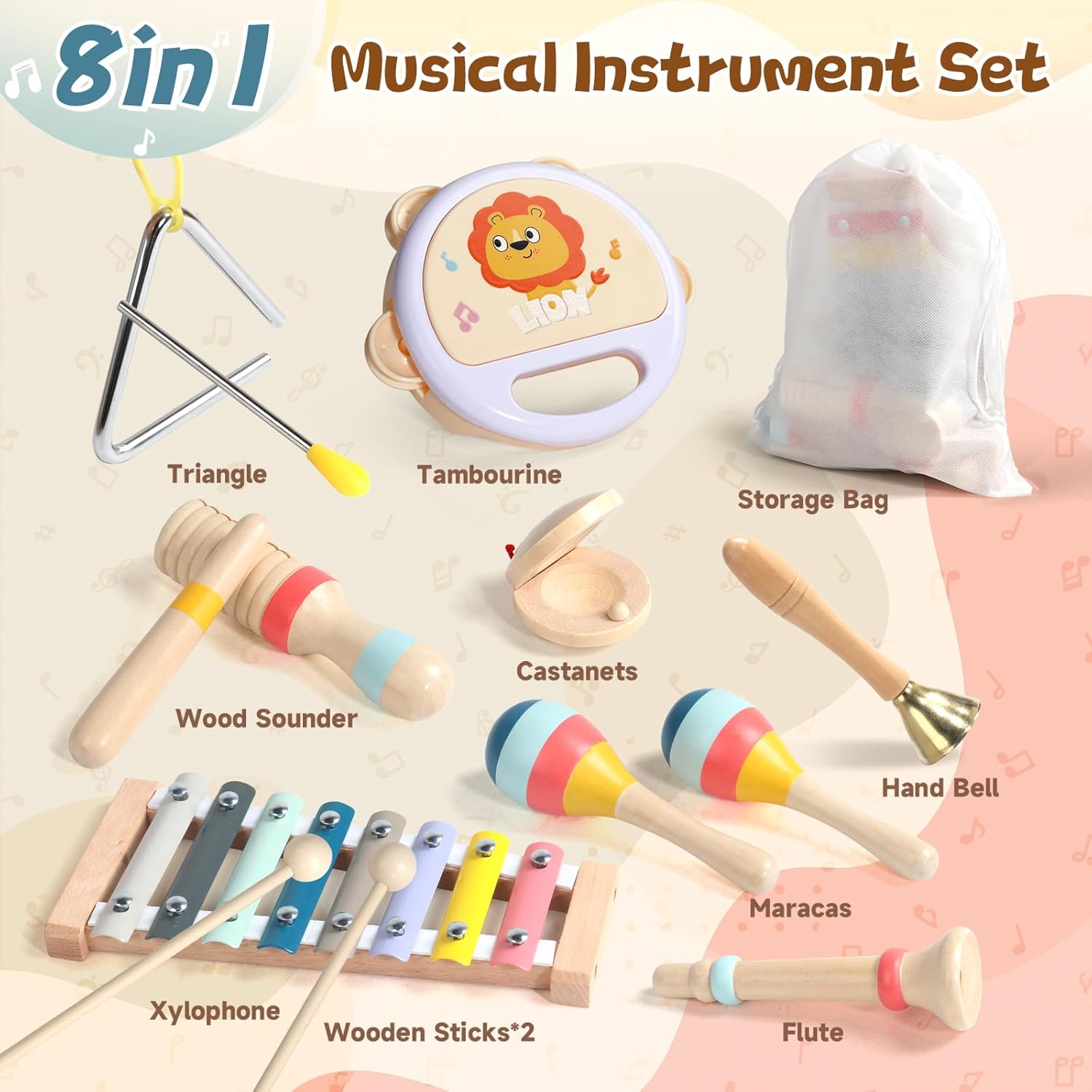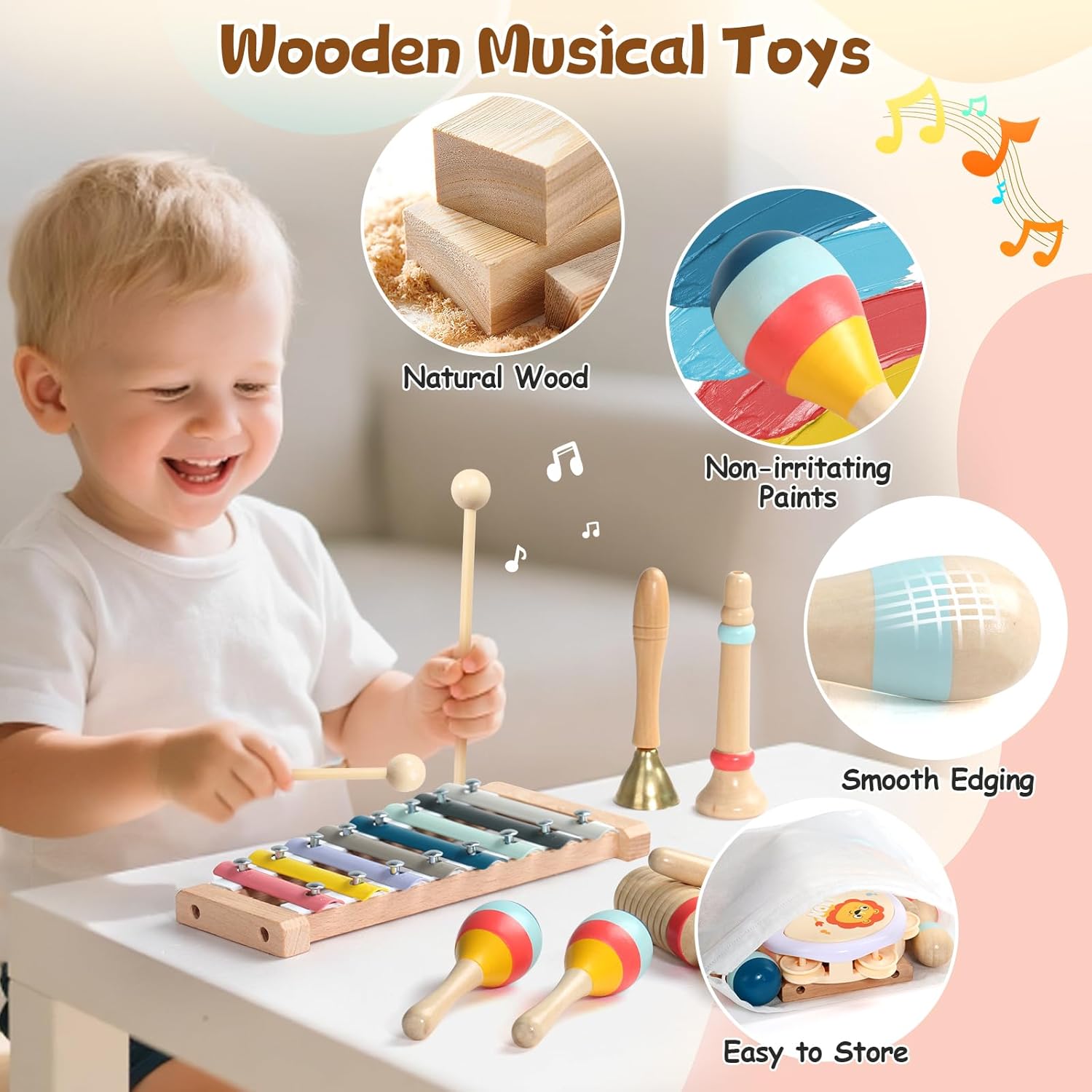 - Safe Wooden Musical Baby Toys: This 1 year old boy toys is made of natural high-quality wood, with a smooth surface without burrs, pigments without irritating odor, and a solid material and design structure, allowing your baby to explore the world of music fearlessly.In addition to 8 musical instruments, it also comes with a storage bag to easily solve storage problems. This 12 month old toys is very suitable for 1 2 3 year old boys and girls.