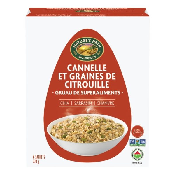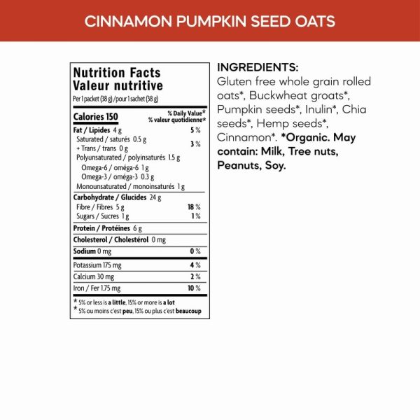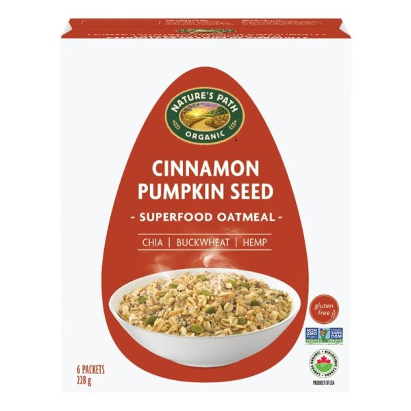 - A unique superfood blend of gluten free oats, buckwheat groats, pumpkin seeds, chia, hemp seeds and flavoured with cinnamon. This oatmeal has a thick, hearty texture, and tastes great on its own, or topped with fruit & nuts for a nutritious start to the day. 6 packets per box.
