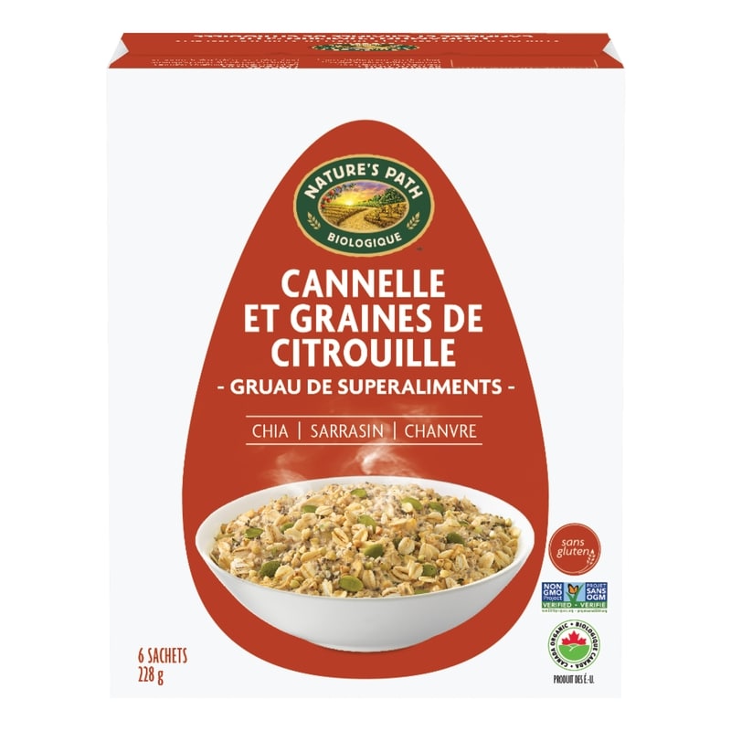 Nature’s Path Superfood oatmeals are unique blends of organic, gluten free oats and super seeds for a boost of plant-based proteins and healthy fats. Superfoods like the chia and hemp seeds in the blend, give a little boost of energizing minerals and anti-inflammatory omega 3 fats to meals. These nourishing, nutrient-dense plant foods help support a demanding lifestyle and are a super easy way to boost the nutritional value of your existing meals. This gluten free oatmeal is also free from added sugars, and has a huge 6g protein in every serve. We believe it’s important to start the day right, and that’s why we created this deliciously tasty oatmeal, filled with simple, whole food, organic and non-GMO ingredients.