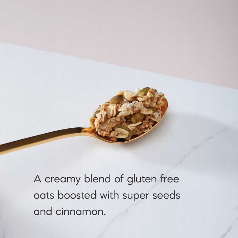 - A unique superfood blend of gluten free oats, buckwheat groats, pumpkin seeds, chia, hemp seeds and flavoured with cinnamon. This oatmeal has a thick, hearty texture, and tastes great on its own, or topped with fruit & nuts for a nutritious start to the day. 6 packets per box.