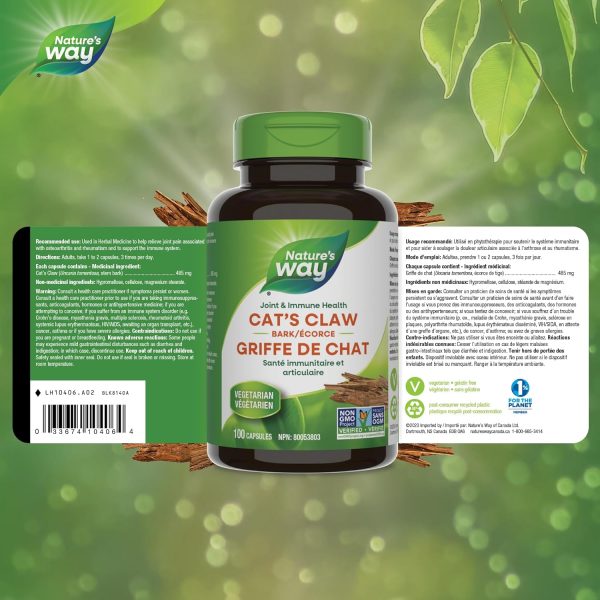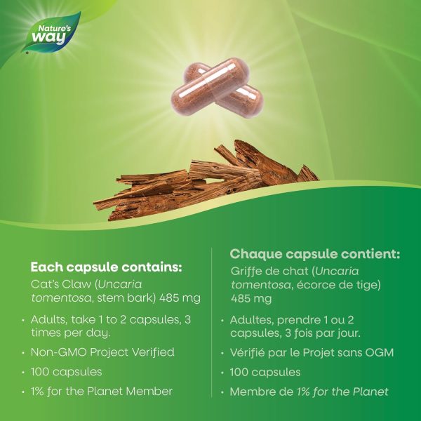 Nature’s Way Cat’s Claw Joint Supplement – Herbal Medicine for Joint Pain Relief in Osteoarthritis and Rheumatism – Supports Immune System – Herbal Osteo Joint Ease – Vegetarian, Non-GMO – 100 Capsules