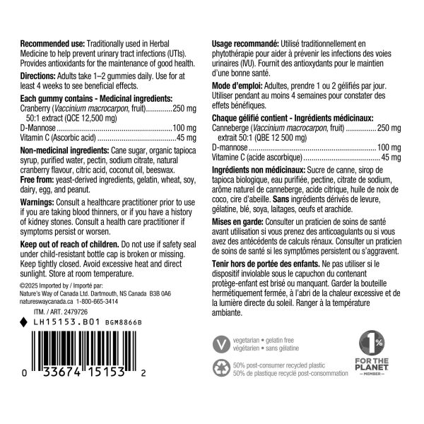 Nature’s Way CranRX Cranberry Gummies are made with clinically studied, high-quality cranberry extract to help prevent recurrent urinary tract infections (UTIs). These vegetarian gummies offer a convenient way to support your urinary health.
