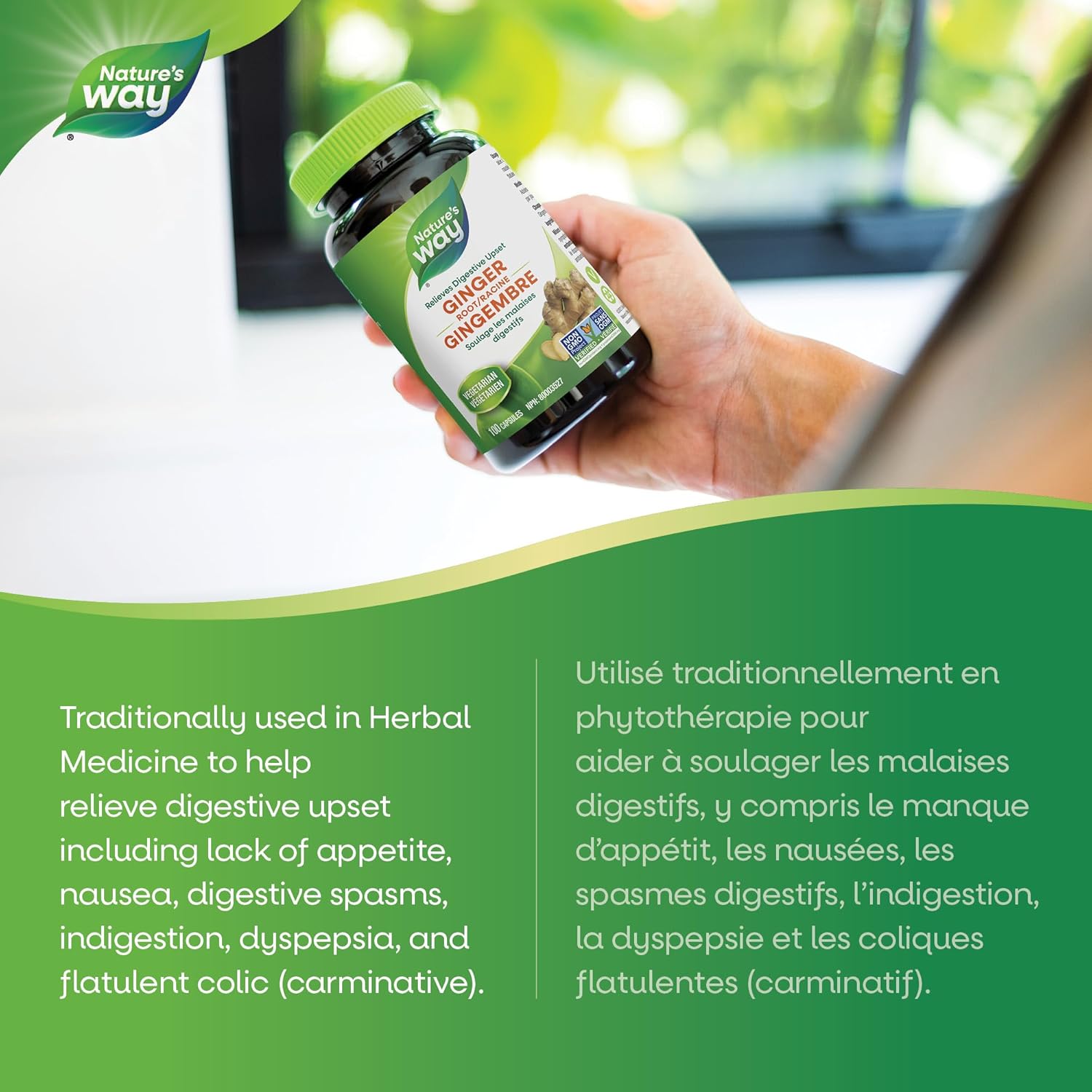 Nature’s Way Ginger Root – Traditional Digestive Support Supplement – Helps Relieve Digestive Upset – Gluten Free, Vegetarian, Non-GMO – 100 Capsules