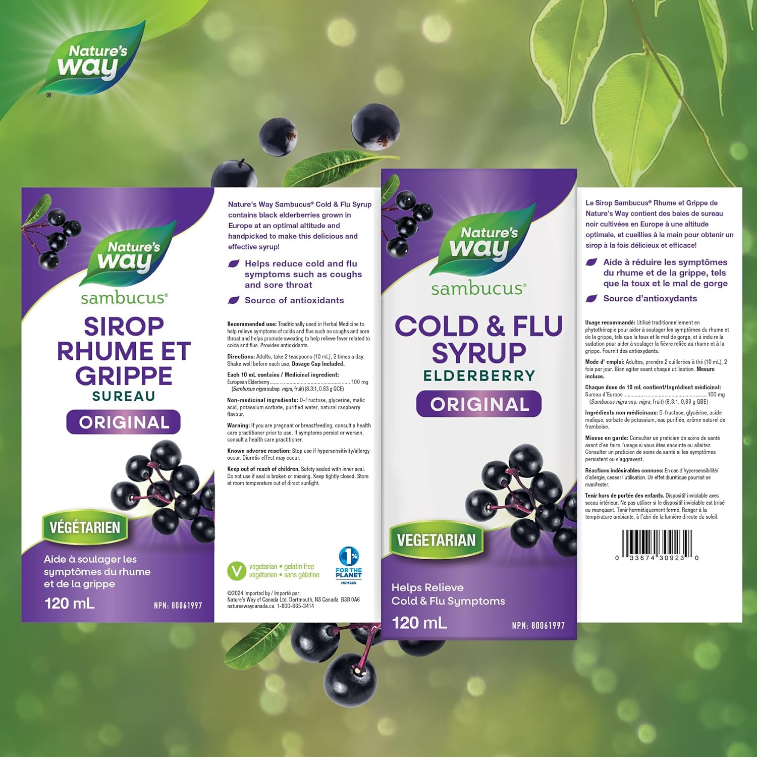 NATURE’S WAY SAMBUCUS COLD AND FLU CARE: Our Original Nature’s Way Sambucus Cold and Flu Care Original Elderberry Syrup is traditionally used in herbal medicine to help relieve symptoms of cold and flu. The delicious syrup is made with Black Elderberries grown on trees in Europe at an optimal altitude, handpicked and harvested at just the right time to give our pure and great tasting Elderberry extract the quality you deserve. As well as helping relieve cold and flu symptoms like coughs, sore throat, and promoting sweating to help relieve fever associated with common colds and flu, Sambucus products are also a source of antioxidants. This syrup is suitable for adults, who should take 2 teaspoons (10 ml), twice daily. Each 10 ml serving contains 100 mg of Black Elderberry extract, is vegetarian, gluten free and contains no artificial colours or flavours. Nature’s Way Sambucus brings the power of elderberries to help you feel your best and help relieve symptoms of cold and flu. We believe that healthy starts inside – that’s why we travel to the hills of Europe to source the best berries and test rigorously to ensure we’re bringing you the ultimate in high quality supplements.
