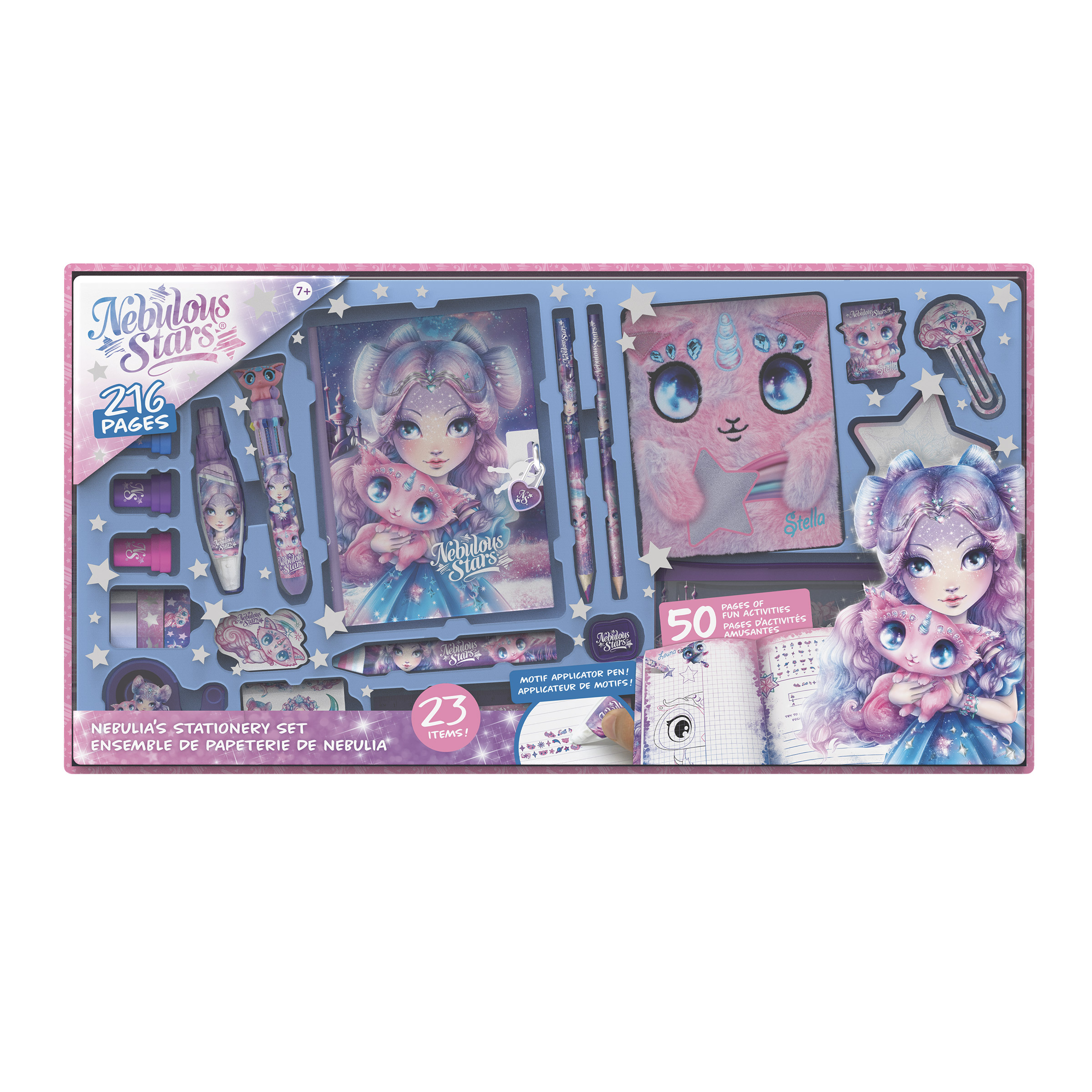 This is the ultimate stationery set! It contains two diaries (one in the shape of a super-soft animoulous and another containing 50 pages of activities and stickers), to keep your secrets safe. What's more, you'll be able to embellish your writing with a wide range of accessories included: motif applicator pen, rainbow lead pencil, self-inking stamps, Washi tape rolls and much more!
