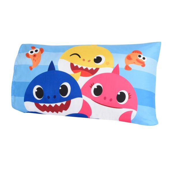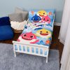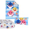 The Nemcor 3-Piece Baby Shark Toddler Reversible Comforter Set brings the deep sea straight to your little one’s bedroom. This 3-piece reversible set includes a comforter, fitted sheet, and pillowcase featuring everyone’s favourite shark family singing their signature “do doo do doo do doo” song. The vibrant graphics help toddlers learn about the family hierarchy of sharks while the soft 100% polyester provides cozy comfort. This Nemcor comforter set is designed to fit standard crib mattresses and pillows. Machine wash cold and tumble dry low to keep the pieces clean. Give your toddler sweet dreams of Baby Shark and friends with this lively comforter set.