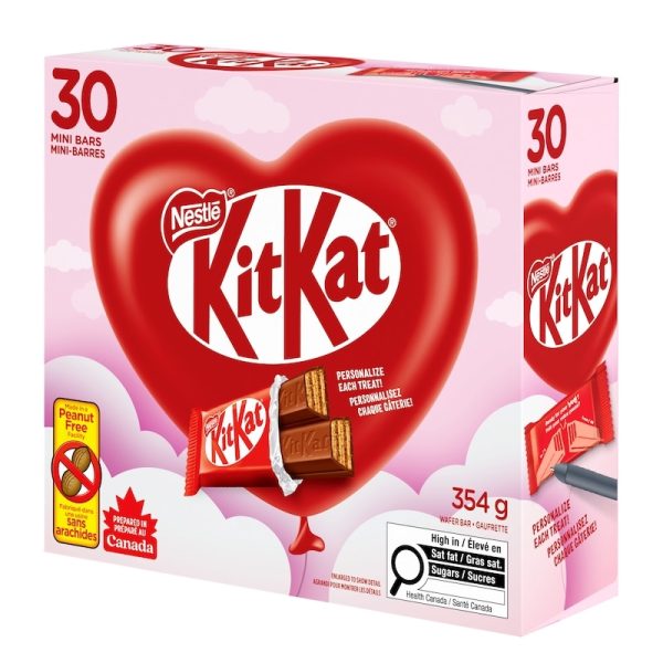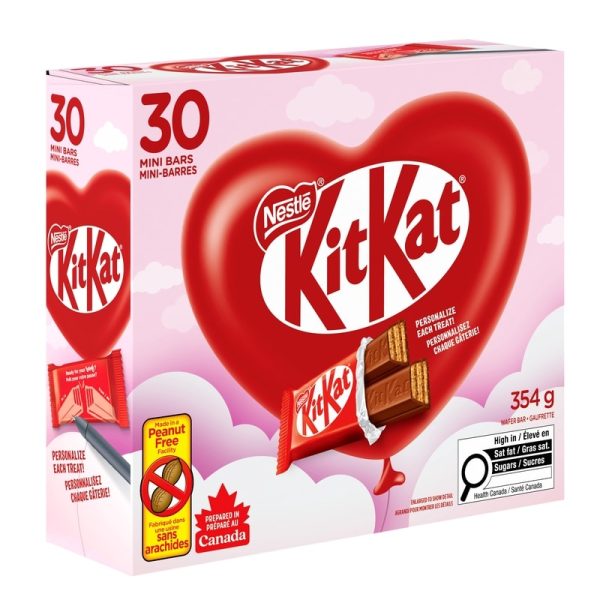 Celebrate Valentine’s Day with KITKAT Valentine Minis! Spread the love with KITKAT’s signature crispy wafers enrobed in smooth milk chocolate in this 30-count box of individually wrapped KITKAT Valentine Minis. Each has room to write a message on it so they’re the perfect Valentine treat to share with family, friends, or someone special. Proudly prepared in Canada, KITKAT Valentine Minis are peanut-free and made in a peanut-free facility with natural flavours.Loved worldwide, over 22 billion KITKAT fingers are consumed globally every year. As part of the NESTLÉ Cocoa Plan, NESTLÉ purchases 100% Rainforest Alliance certified cocoa which helps farmers improve the quality of their products and strengthen their communities. Share the joy of KITKAT with all the KITKAT lovers in your life. Have a break, have a KITKAT!
