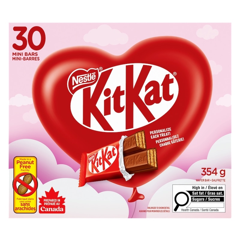 Celebrate Valentine’s Day with KITKAT Valentine Minis! Spread the love with KITKAT’s signature crispy wafers enrobed in smooth milk chocolate in this 30-count box of individually wrapped KITKAT Valentine Minis. Each has room to write a message on it so they’re the perfect Valentine treat to share with family, friends, or someone special. Proudly prepared in Canada, KITKAT Valentine Minis are peanut-free and made in a peanut-free facility with natural flavours.Loved worldwide, over 22 billion KITKAT fingers are consumed globally every year. As part of the NESTLÉ Cocoa Plan, NESTLÉ purchases 100% Rainforest Alliance certified cocoa which helps farmers improve the quality of their products and strengthen their communities. Share the joy of KITKAT with all the KITKAT lovers in your life. Have a break, have a KITKAT!