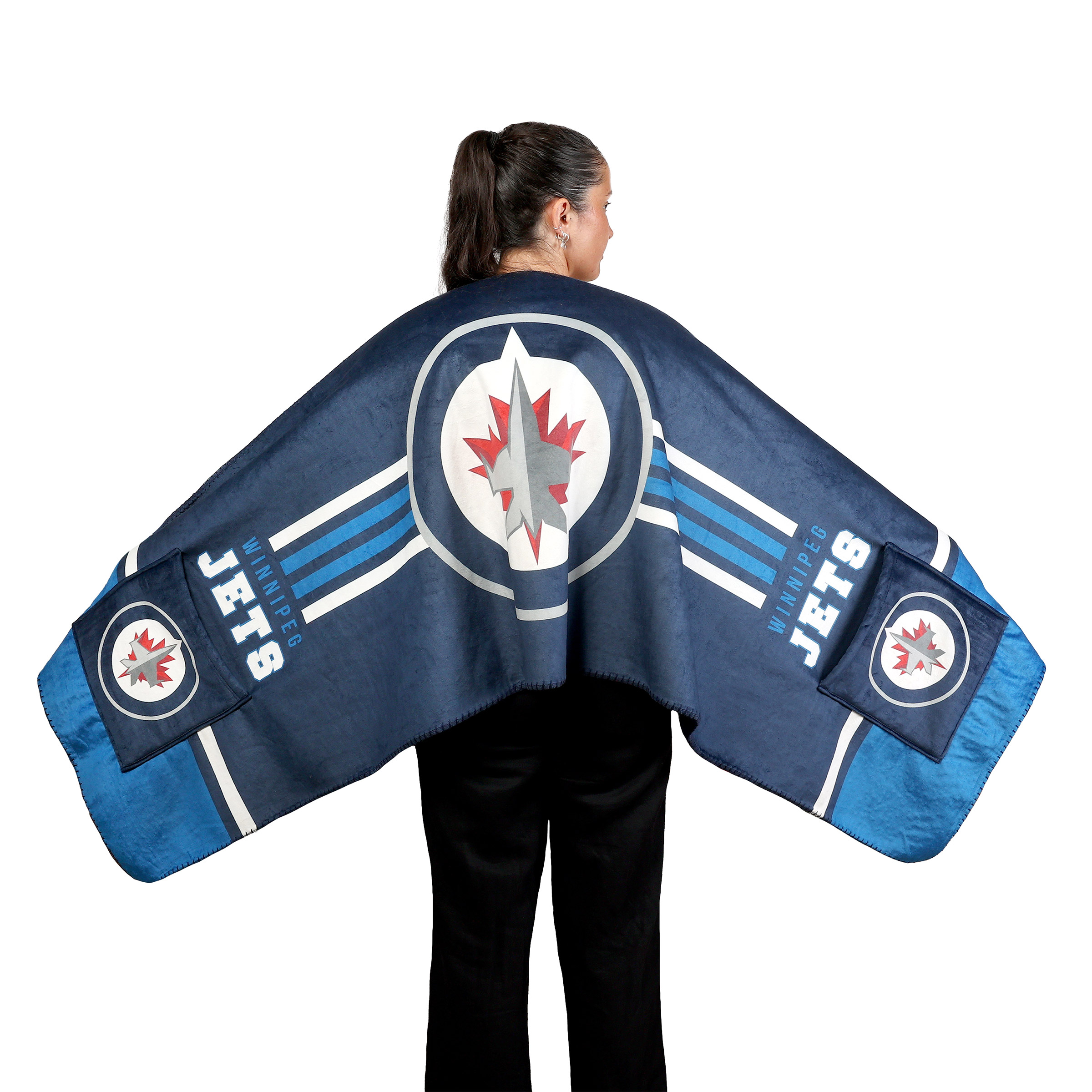 - Drapes over shoulders